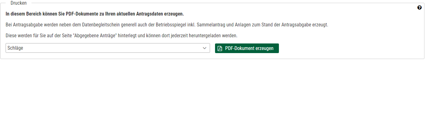 Hinweis: Der Druck bezieht sich auf Ihre Angaben im Antrag, wenn Sie LE-Teilschläge ausdrucken, ohne LE-Teilschläge angegeben zu haben, haben Sie hierfür keine Auswahloption.