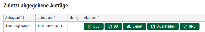 Sie können den Export erst ausführen, wenn Sie Ihren Antrag bereits abgegeben haben. Bei den Änderungsanträgen ist hier zu beachten, dass die xml-Datei nur die geänderten Attribute enthält.
