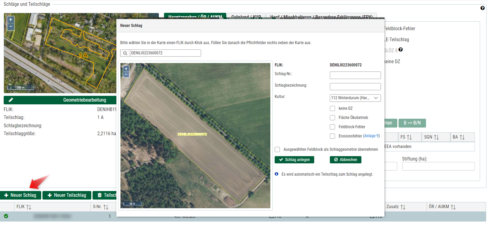 A) Neuen Schlag/Teilschlag erstellen - Schlaggeometrie zeichnen