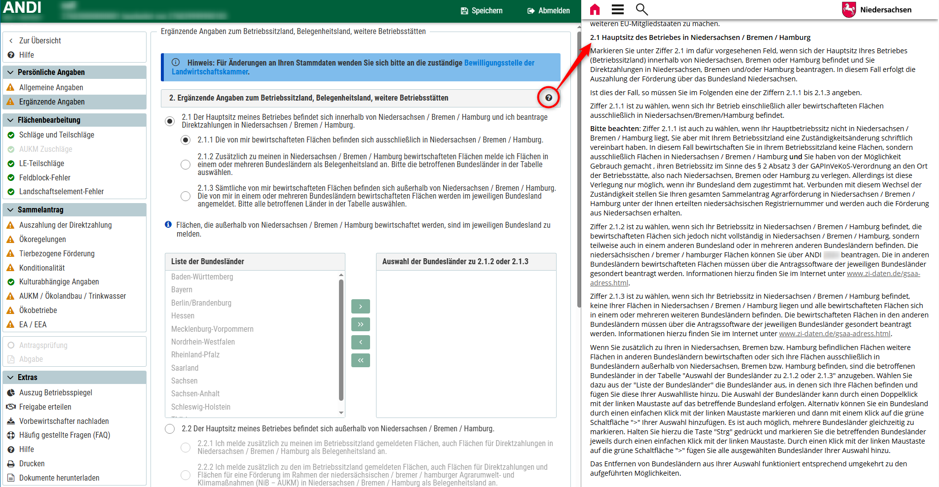 Klicken Sie auf ein Hilfe-Symbol in der Anwendung, öffnet sich im Browser die entsprechende Hilfe zu dem Thema.